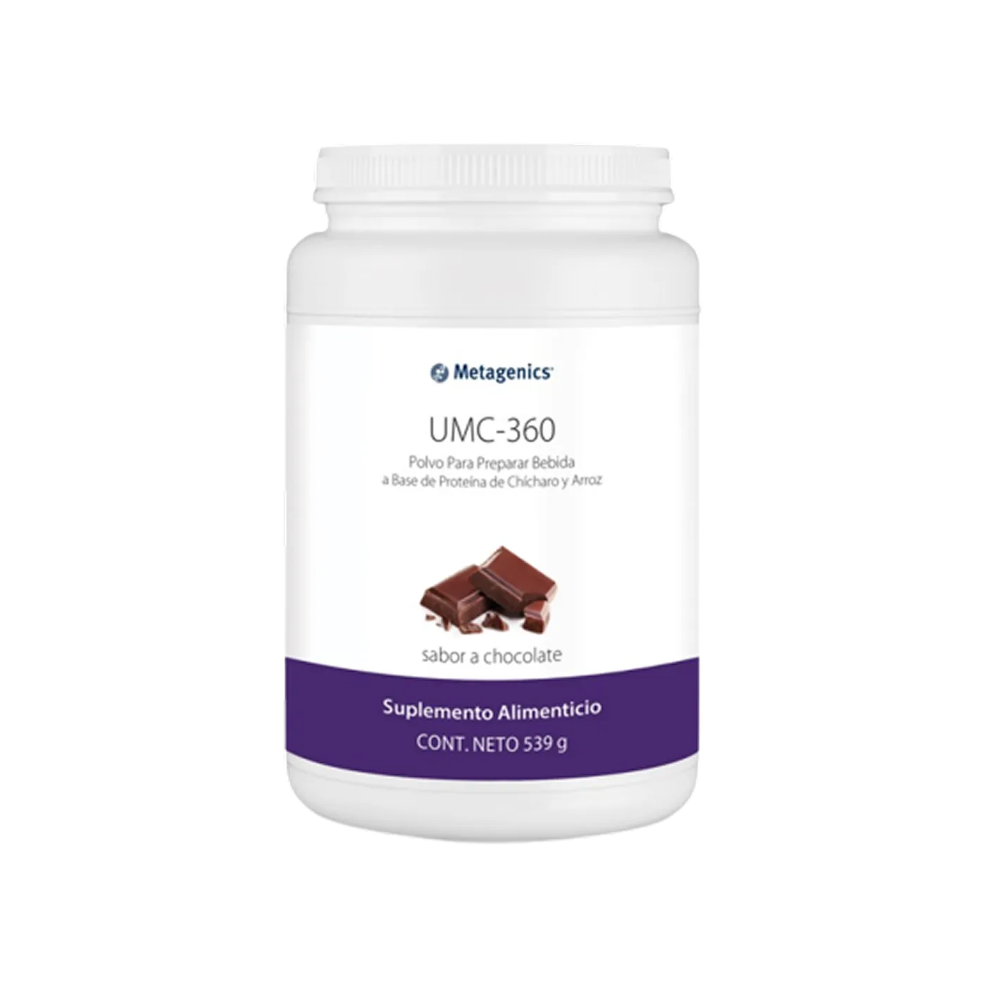 Metagenics UMC-360 proteína de chícharo y arroz sabor chocolate 539 g